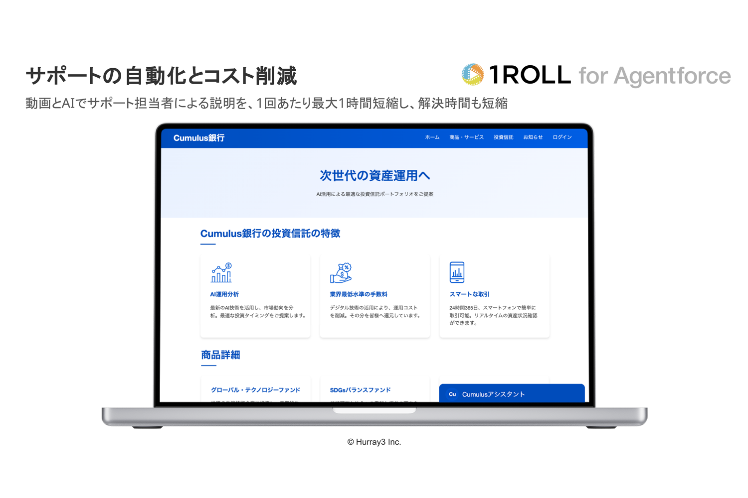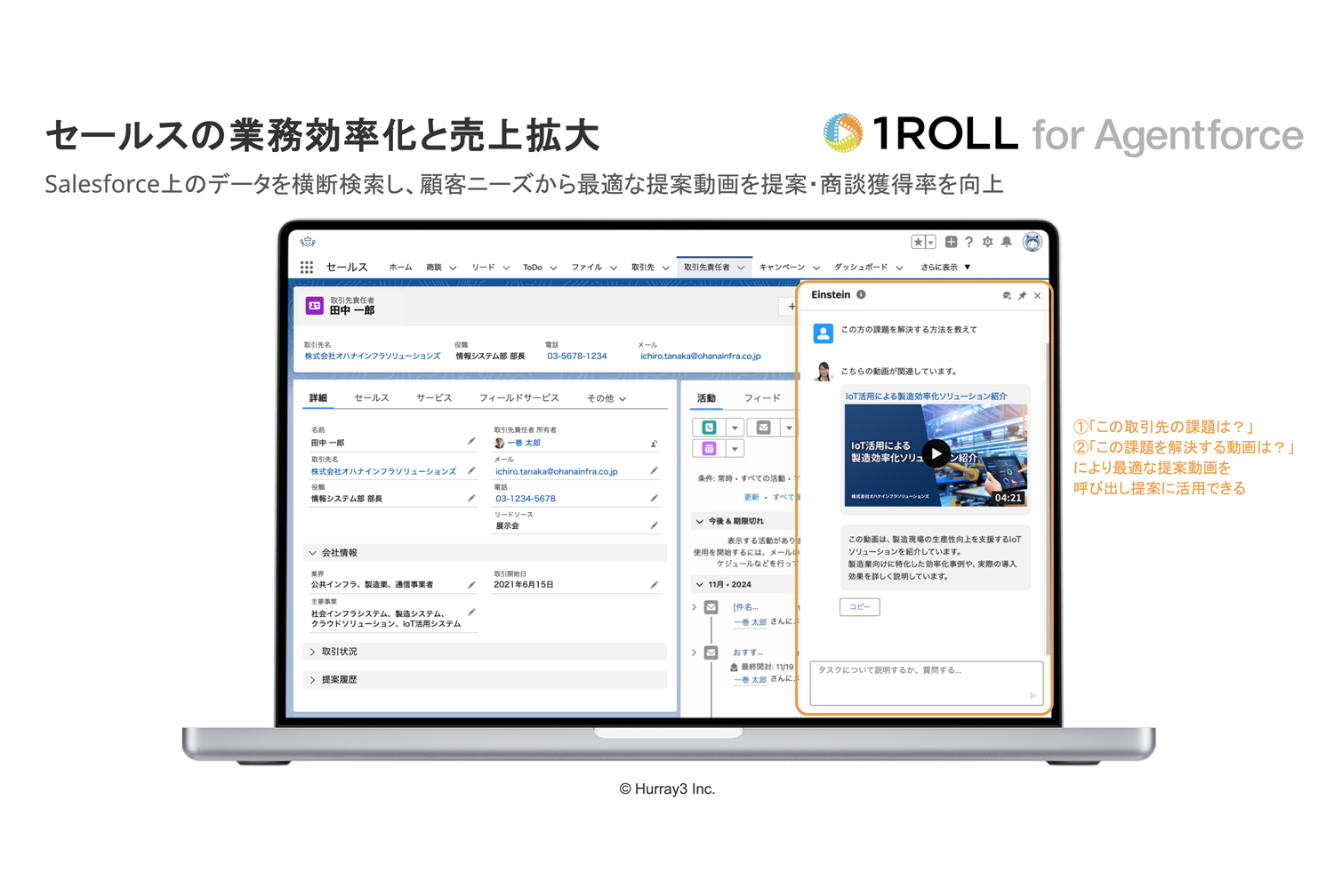 株式会社フレイ・スリー(本社:東京都品川区、代表取締役CEO:石田 貢)は、昨年発表した「1ROLL AIエージェント」をさらに進化させ、Salesforceの自律型AIエージェント「Agentforce」と連携した新サービス「1ROLL for Agentforce」の提供を開始いたします。本サービスは株式会社フレイ・スリーが提供するアプリケーションとして、Salesforce AppExchange(https://appexchangejp.salesforce.com/appxListingDetail?listingId=422a4ee8-bb71-4fc0-8510-f12d0eff0519)上からご利用いただけます。
