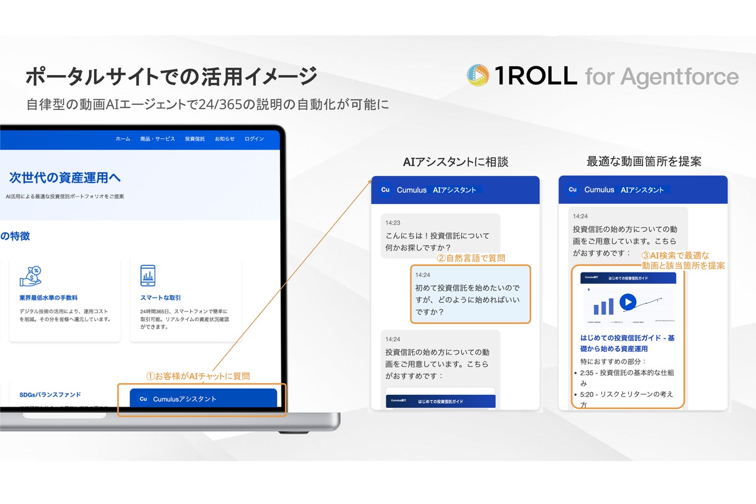 株式会社セールスフォース・ジャパン 専務執行役員 アライアンス事業統括本部 統括本部長 浦野敦資は、次のように述べています。「『1ROLL for Agentforce』がAppExchangeに加わり、AI×動画ソリューションの選択肢が拡充されることを歓迎いたします。専門的な動画ナレッジとAgentforceの自律型AIエージェントが組み合わさることで、お客様のビジネストランスフォーメーションをさらに加速させると確信しています。」