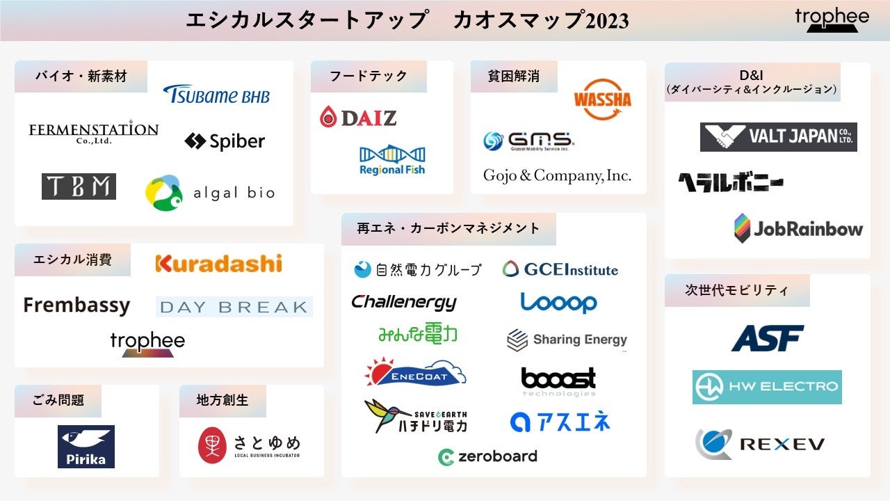 個人向けエシカルプラットフォーム “trophee”( https://trophee.jp/)を運営する株式会社STACTs (代表取締役CEO:滝島 大貴、Co-Founder 取締役COO:吉種 貴彦、以下当社)は 「エシカルスタートアップ カオスマップ2023」を作成・公開いたします。