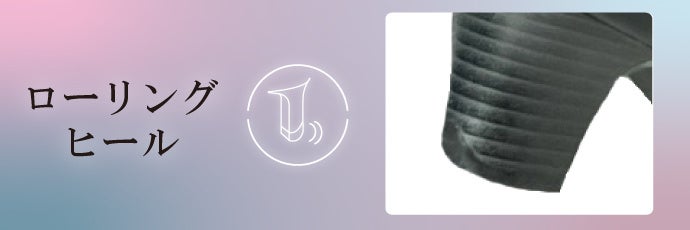スムーズな着地に誘導する、ヒール背面にまでゴムを使用したオリジナルヒール形状。