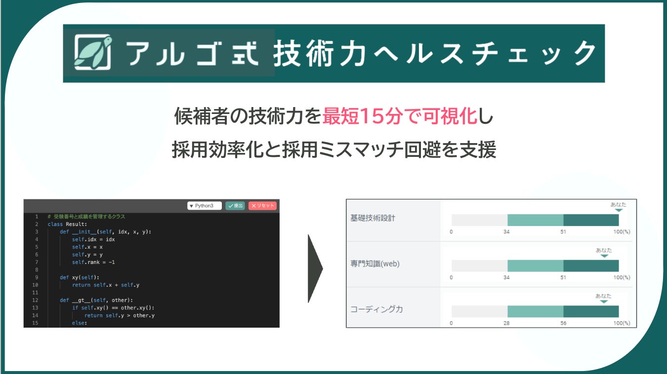 エンジニア候補者の技術力を最短15分で可視化する「アルゴ式技術力ヘルスチェック」の提供を開始