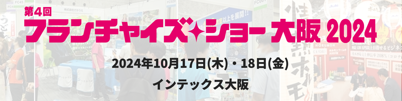 10月17日(木)・18日(金)に開催される国内最大級のフランチャイズ展示会「フランチャイズ・ショー大阪」に出展します。