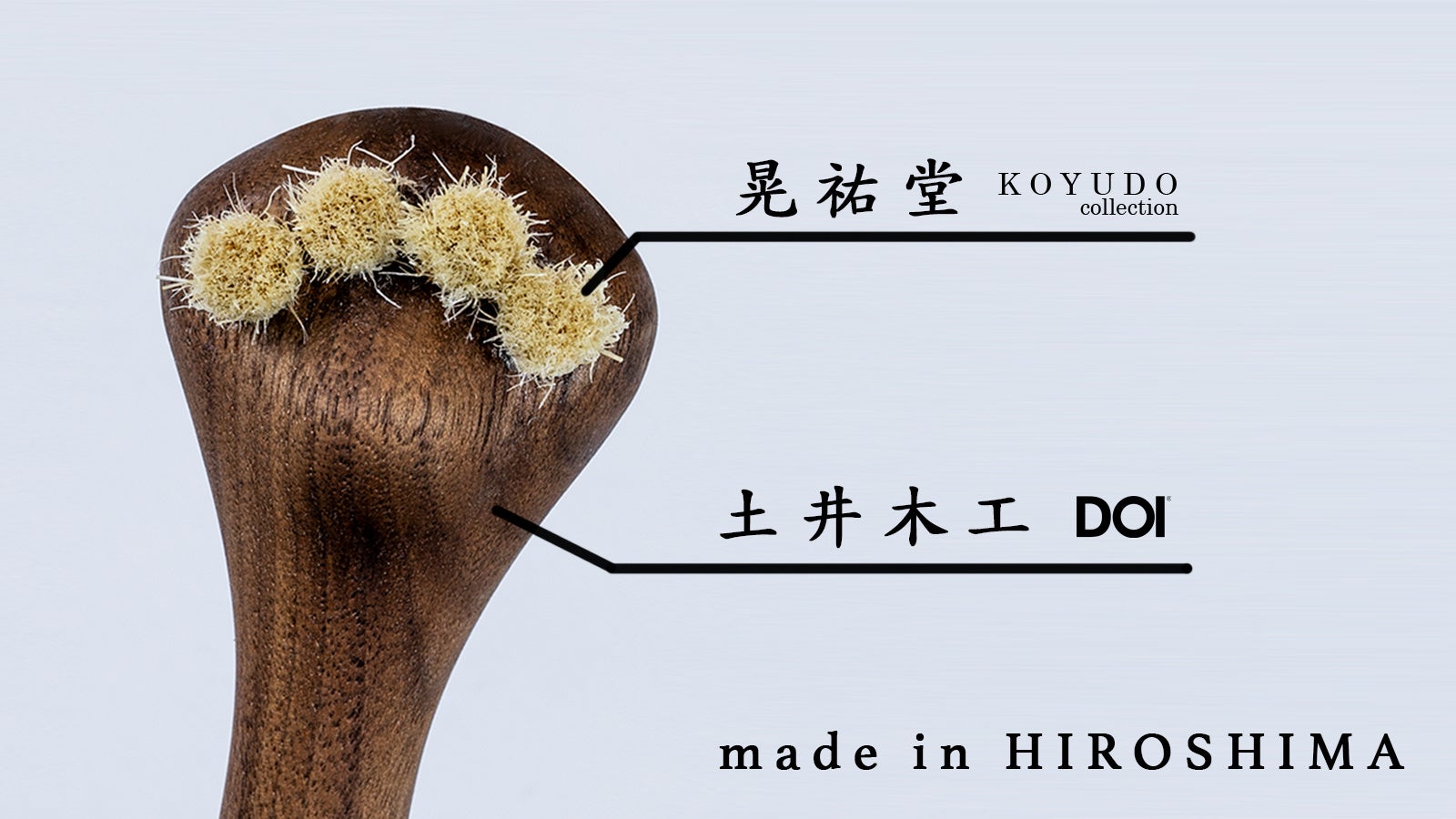 筆を作り続けて45年の晃祐堂と、家具を作り続けて75年の土井木工のコラボレーションから「オリジナル化粧筆」が開発されたのは2015年のこと。江戸時代から続く広島県を代表する伝統工芸品として知られる熊野筆の化粧筆と府中家具の遺伝子が出会うのは必然でした。