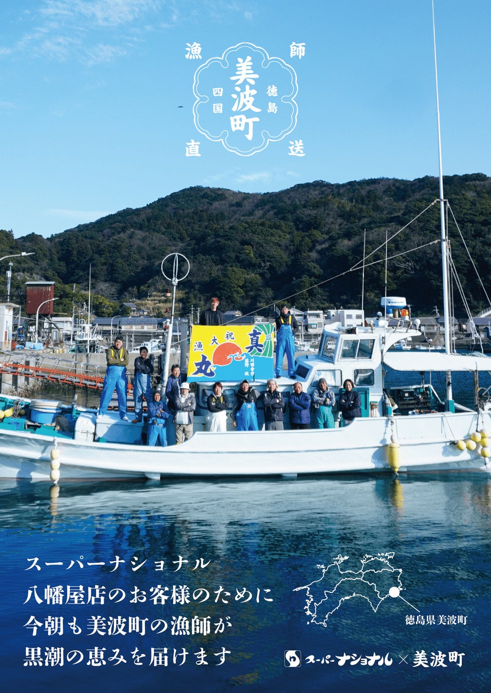第一弾となる当取り組みは、美波町で水揚げされる鮮魚の販路拡大と認知向上を目的に、株式会社スーパーナショナル(大阪府大阪市大正区)の協力の下、産地直送鮮魚の販売を行うもので、同社八幡屋店にて3月23日(土)から専用コーナーを作り定期販売をしています。
