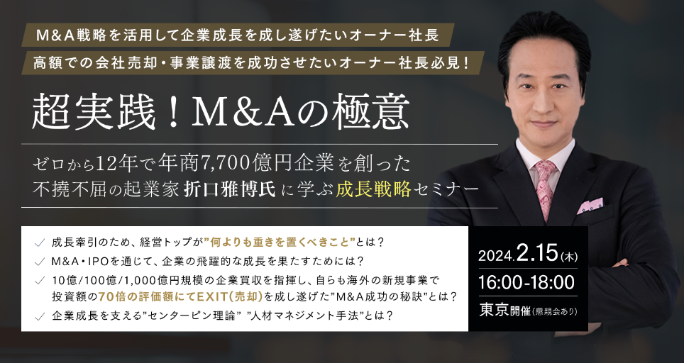 超実践!グッドウィル創業者 折口雅博氏から学ぶ、本では語り尽くせない『M&Aの極意』とは?【2/15(木):セミナー開催】