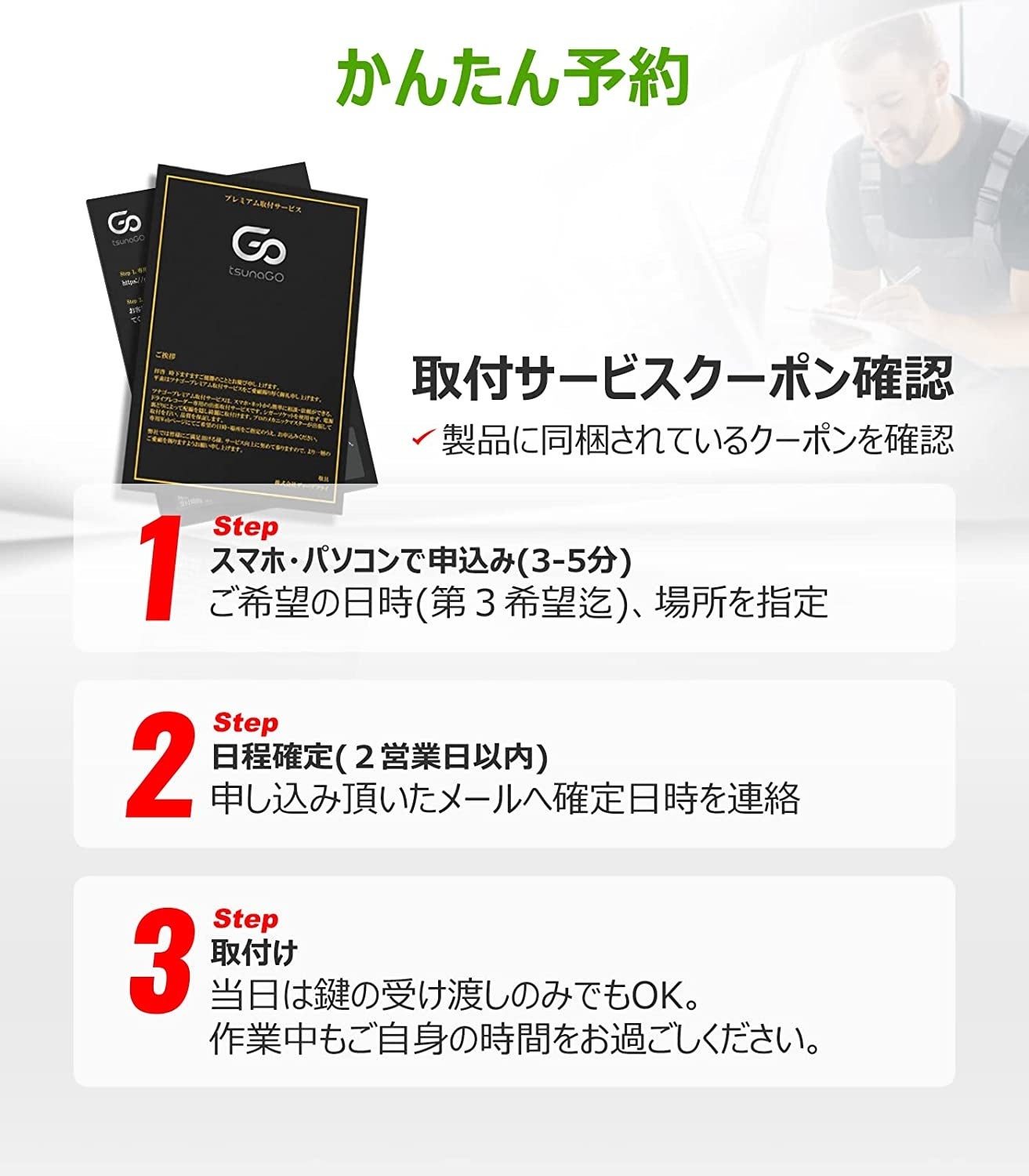 “自身で取付けると、よほど知識や技術がなければ、やはり配線が車内に一部露出してしまうのが一般的です。こちらの商品ではオンライン予約することで追加料金なしで出張で取付け作業をしてもらえるという特典があります。”