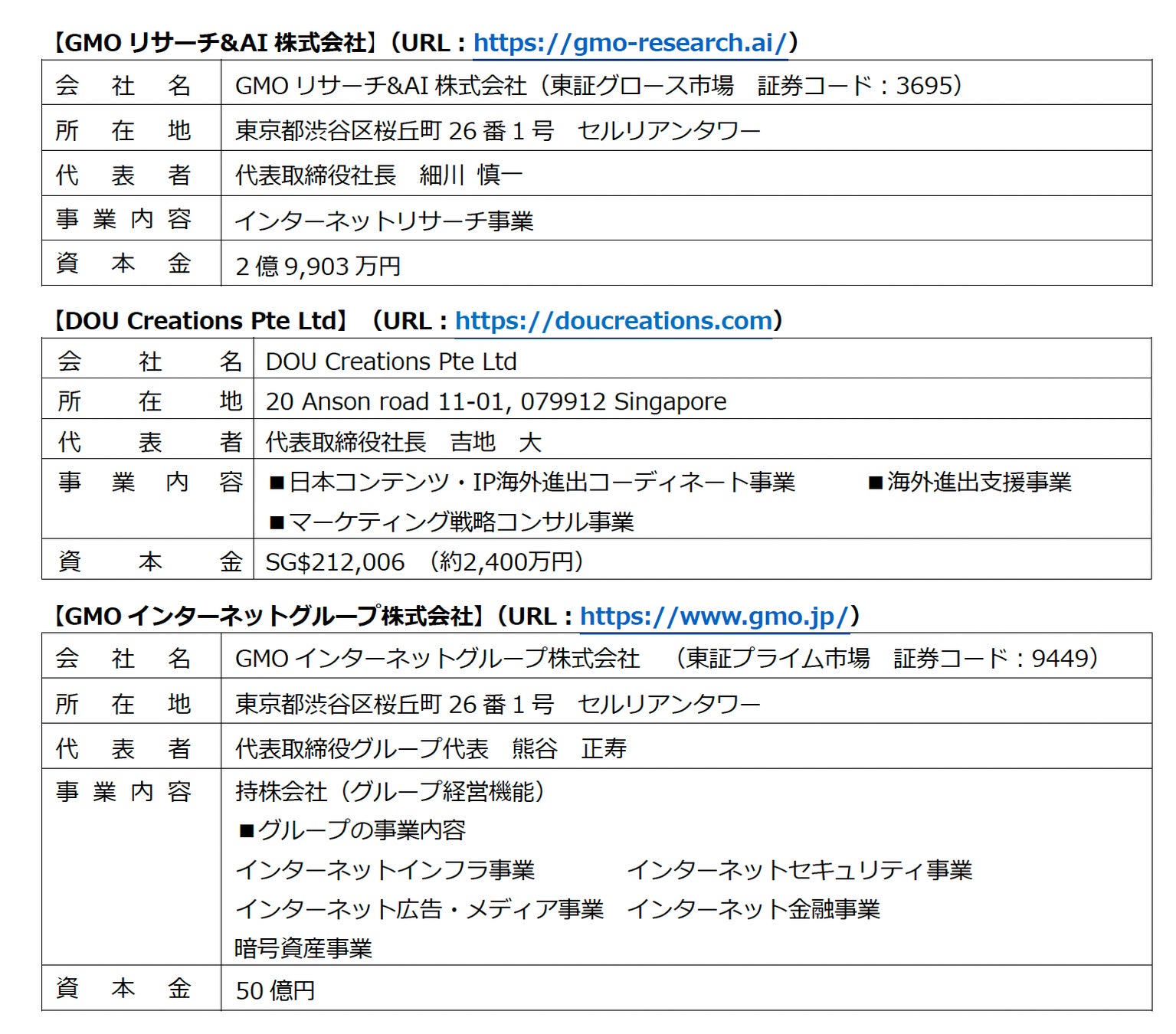 本状はGMOリサーチ&AI株式会社とDOU Creations Pte Ltdの共同プレスリリースです。