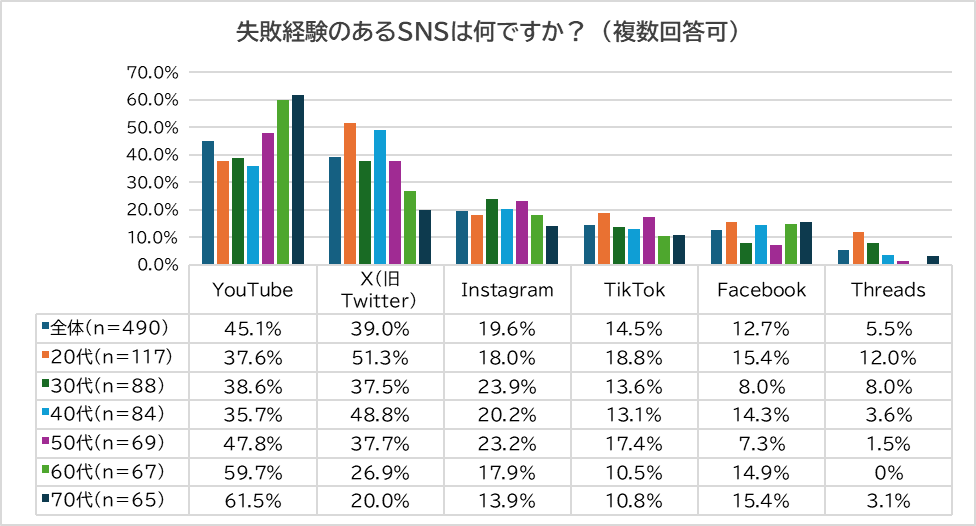 5.SNSでの失敗は「XとYouTube」が中心、拡散力と動画影響の強さが背景に