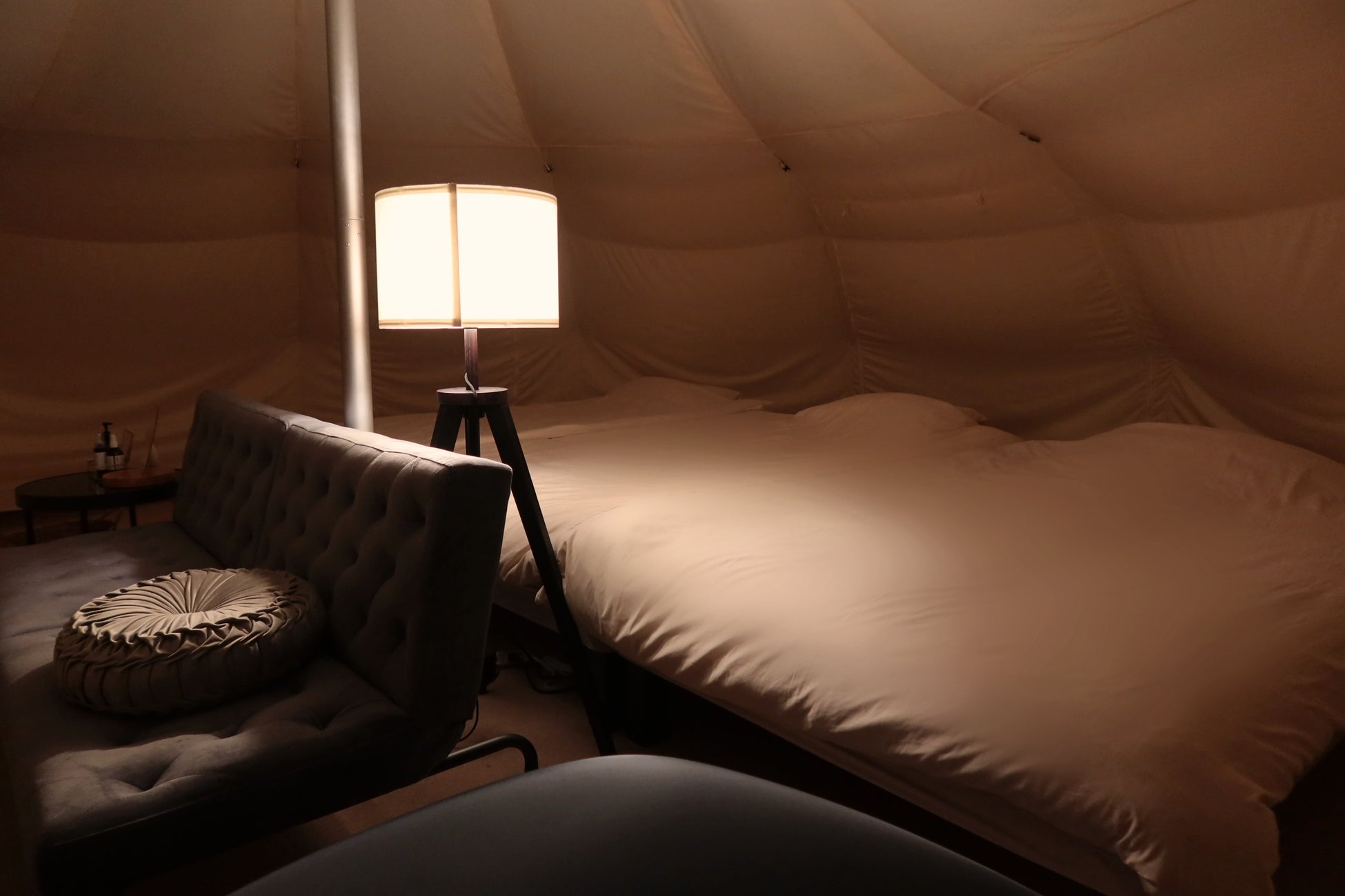 アウトドア初心者でも気軽に体験できるグランピングに女子会プランが登場。テントサウナや焚火、個別のシャワールーム・トイレを完備・冷暖房完備のテントなど快適なグランピングステイを満喫。