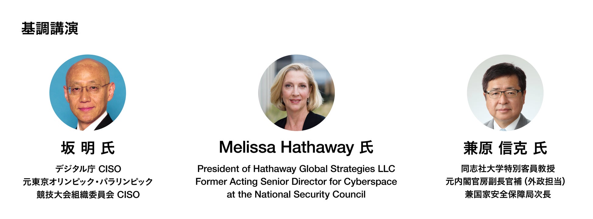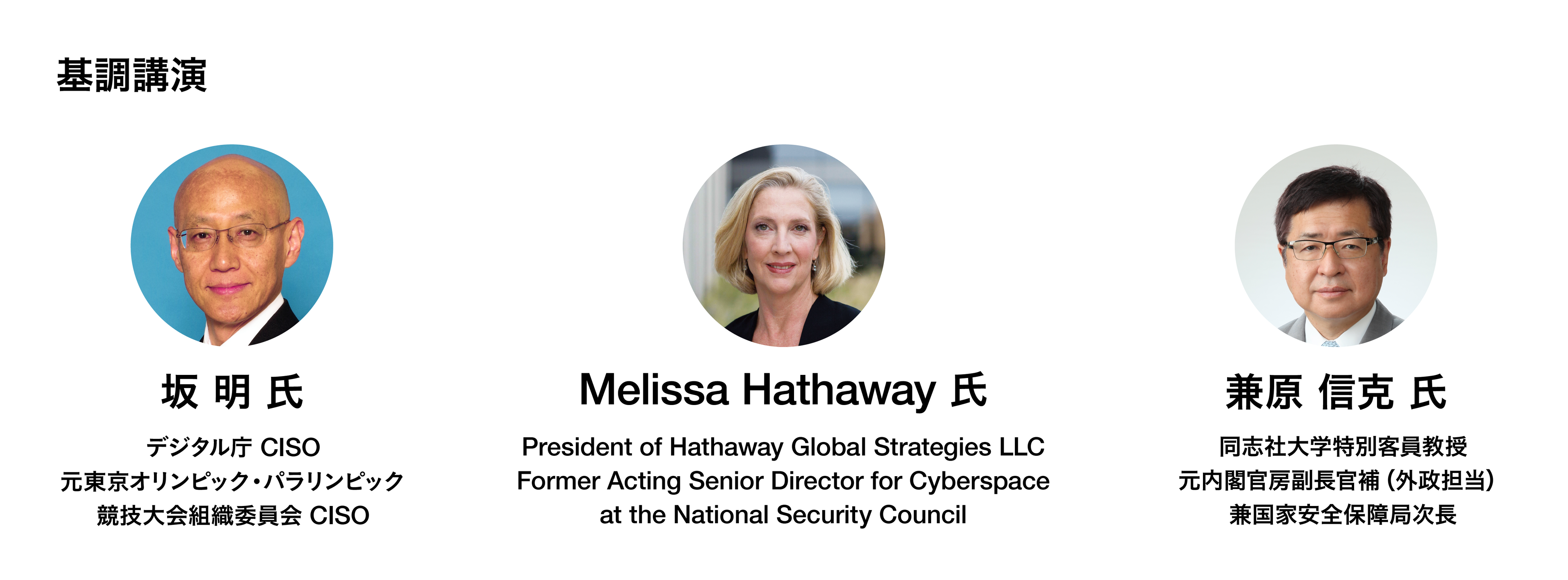 今回のCYDEF2022では坂明氏(デジタル庁CISO)、Melissa Hatheway氏(Hathaway Global Strategies LLC代表取締役)、兼原信克氏(同志社大学 特別客員教授)の3名の方に基調講演をいただくことになりました。お三方ともサイバーディフェンスと安全保障についての造詣が深く近年の国際状況を踏まえお話しいただきます。