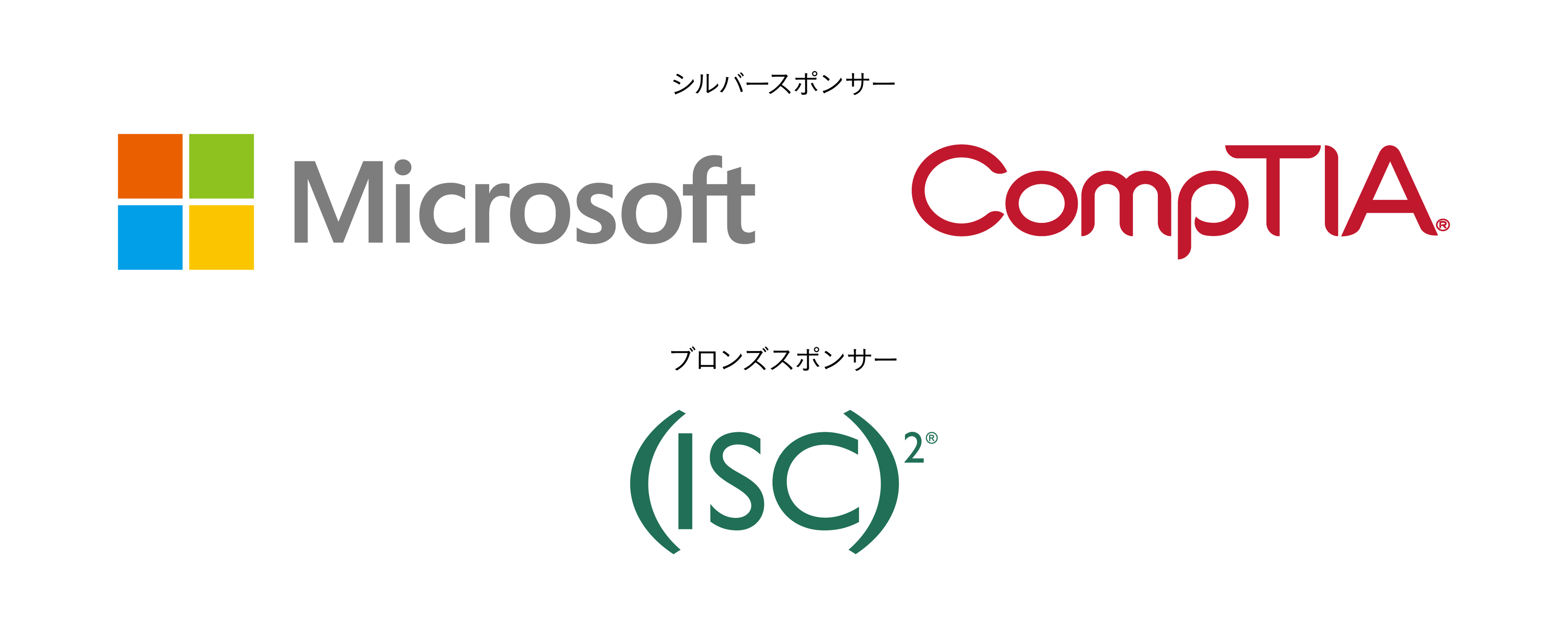 今回、新しく協賛いただく会社・団体が決定しました。シルバースポンサーとして日本マイクロソフト株式会社、CompTIA 日本支局、ブロンズスポンサーとして(ISC)² に協賛いただきました。これで協賛企業・団体は14となり今回も多く企業・団体に協賛いただけることになりました。