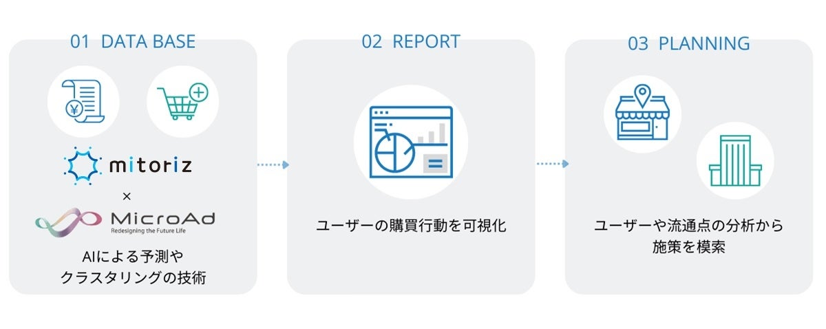 mitorizは、メーカーや小売に向けに、店頭構築や調査、ラウンダーなどの人材派遣サービスを提供してきましたが、マイクロアド社との連携により、消費者購買データを活用し新たなサービスとして「購買予測分析」や「広告配信」が可能となります。