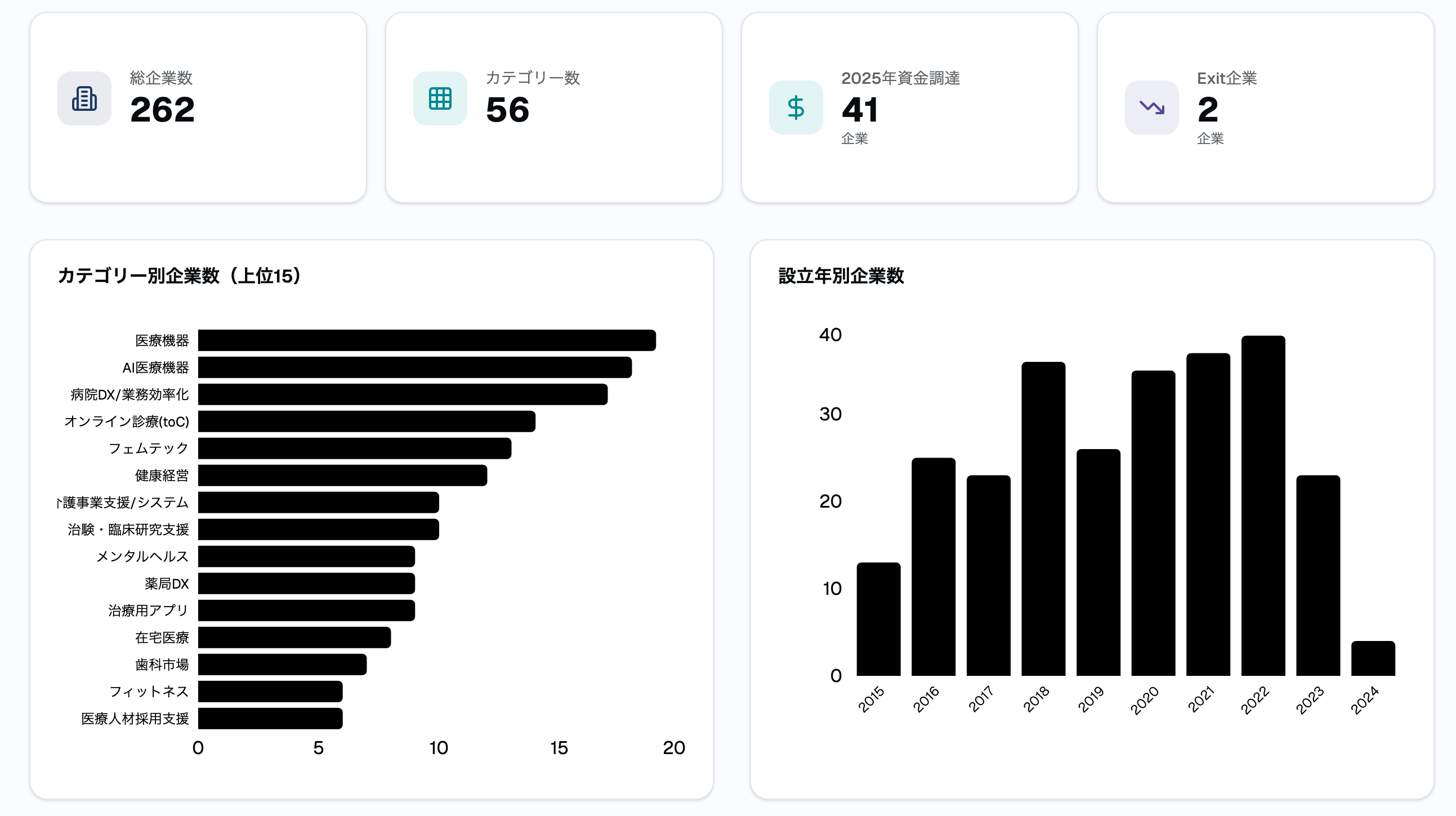 設立10年以内のヘルスケアベンチャーマップを公開 合計262社 & 52カテゴリー掲載