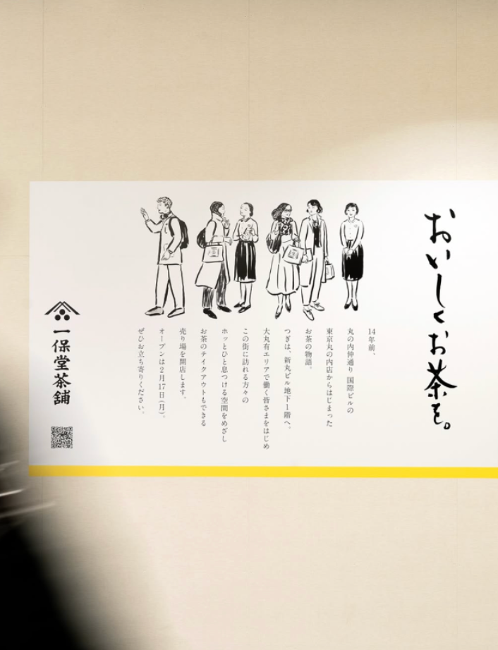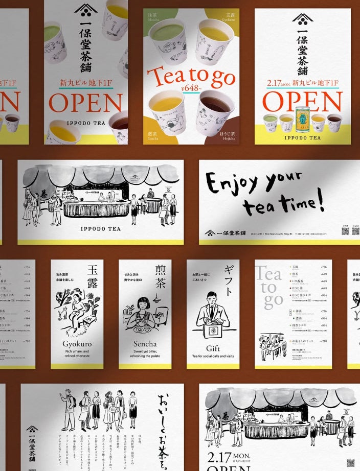概要: お茶をテイクアウトでも楽しんでいただくを基軸にオープンした、東京・新丸ビル店オープンの店舗サイン、メニュー、広告物などのグラフィックデザイン、動画制作を担当。