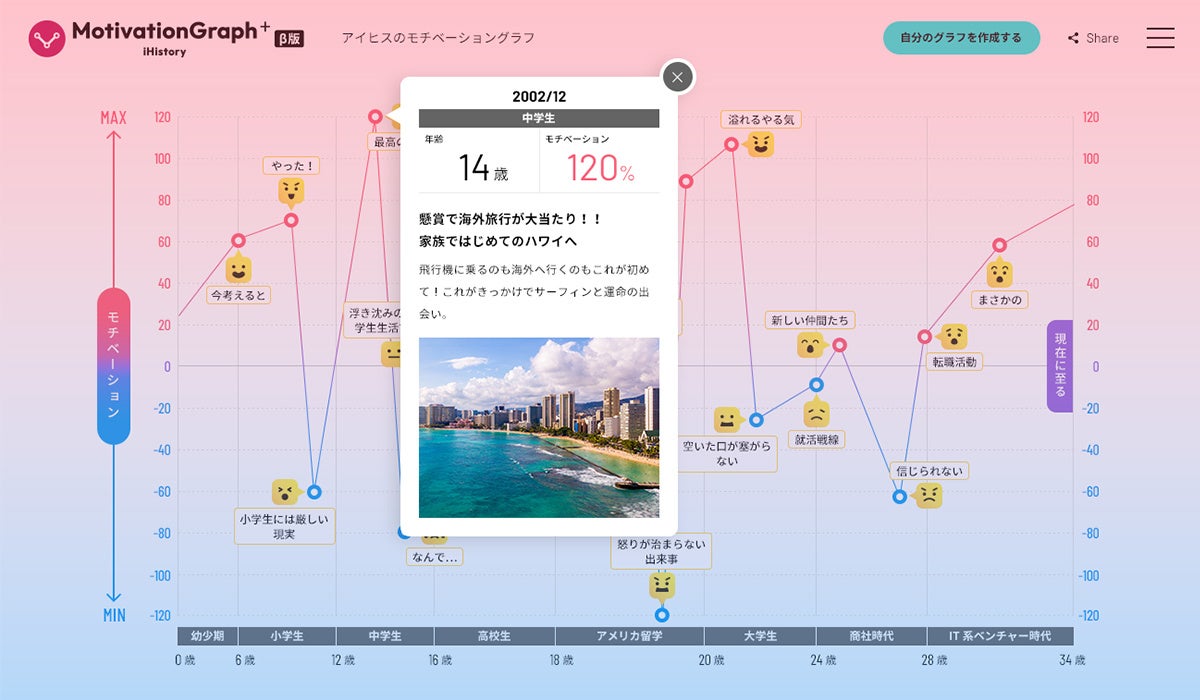 iHistory Inc.は、年表作成サービスに加えて、この人生の浮き沈みのモチベーションを簡単に可視化できる『MotivationGraph+』を追加リリースすることで、