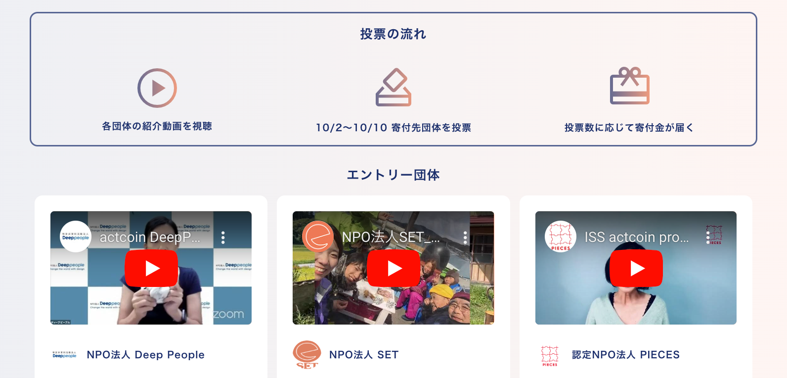 【社会貢献アプリ「actcoin」 公式ウェブサイト】