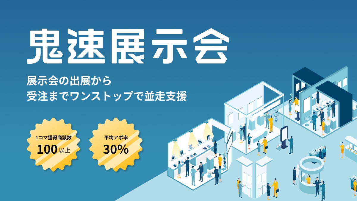 鬼速展示会は、展示会出展の戦略からブースデザイン、商談獲得・受注までをワンストップでご支援します。