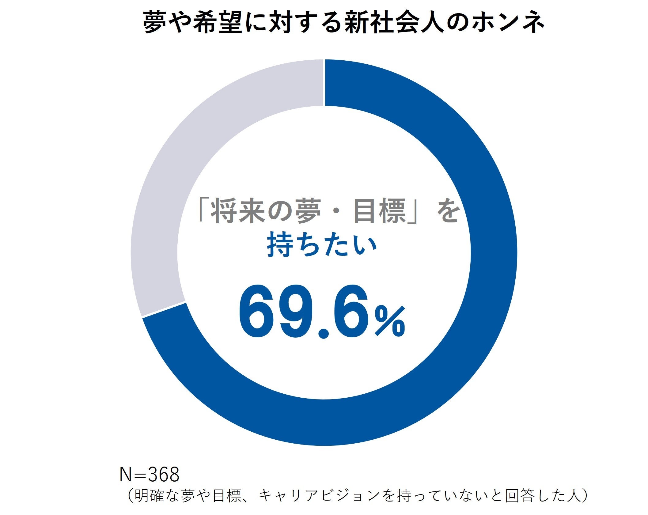 更に、現在明確な夢や目標、将来のキャリアイメージを持てていない人のうち、69.6%が今後「夢・目標・キャリア」を持ちたいと感じていることが明らかになりました。