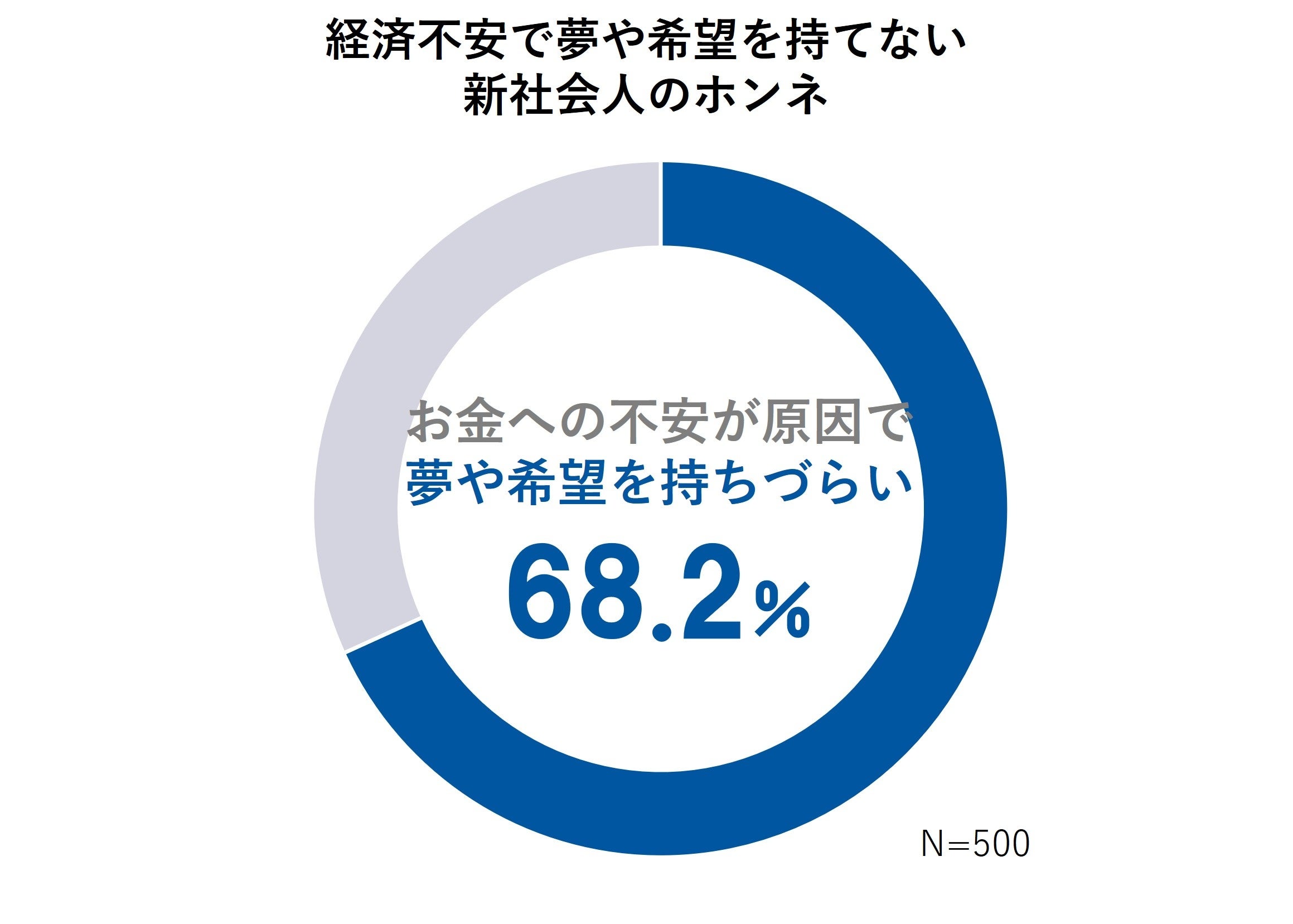 調査の結果からも、新社会人がお金に対して強い不安感を感じていることがわかりました。更にこの不安が原因で、68.2%という過半数の新社会人が、「将来に対し夢や希望を持ちづらい」と感じていることが明らかになりました。
