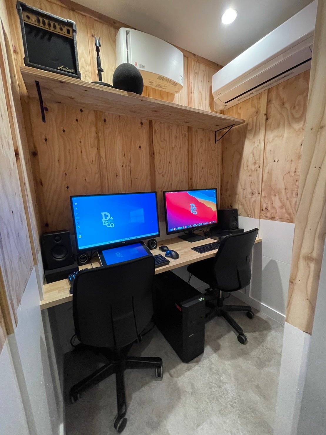 マンツーマンダンスレッスンも可能なレッスン室が2部屋、プロの機材でレコーディングできるレコーディングルーム、うたってみたの編集や動画編集もできるエディットルームを新設いたしました。