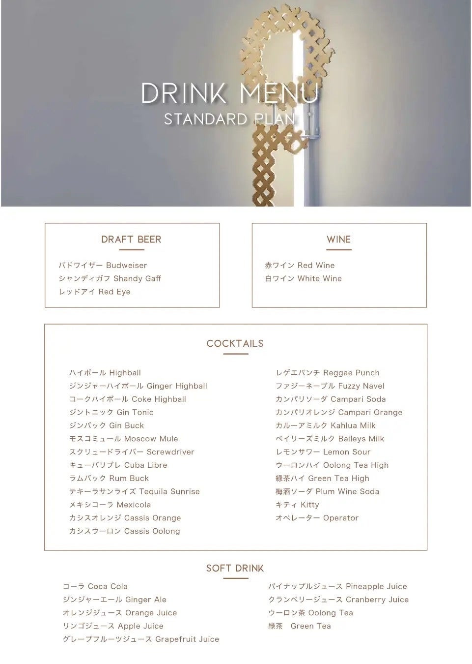 ¥4,500/personプラン 2H飲み放題(30分前 L.O.)