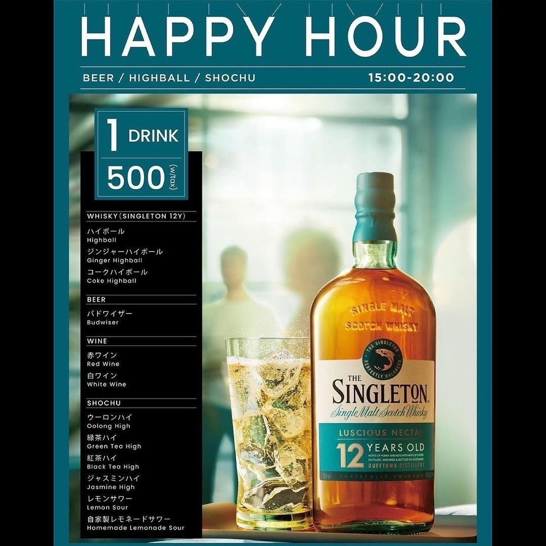 また15:00-20:00の間は、各種ドリンクが一杯500円(税込)のハッピーアワーも展開中。