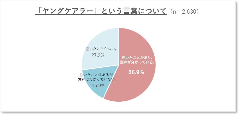 - 介護に関する社会問題『ヤングケアラー』について、約4割が「意味はよく知らない」「聞いたことがない」と回答。