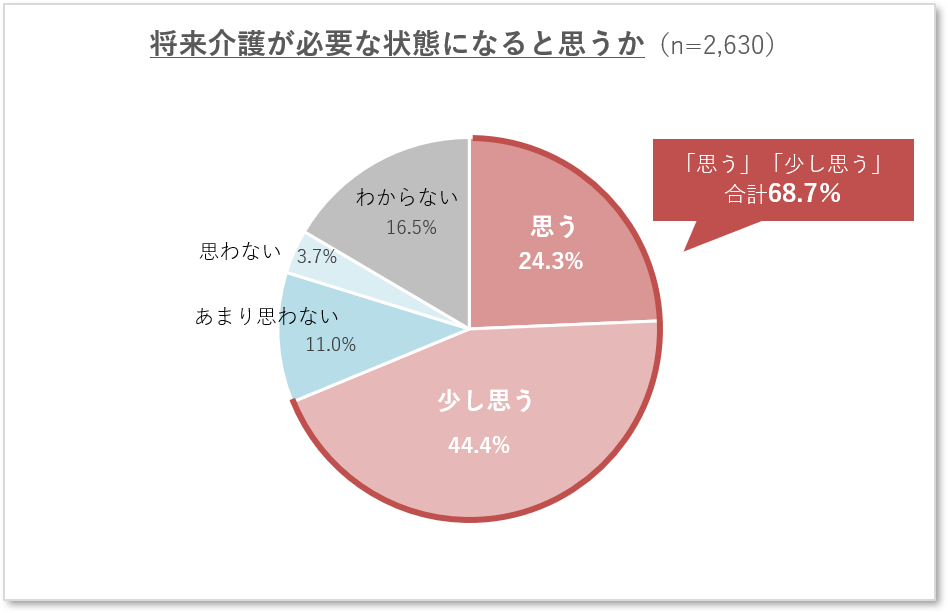 - 「将来介護が必要な状態になると思う」と回答した人は約7割。