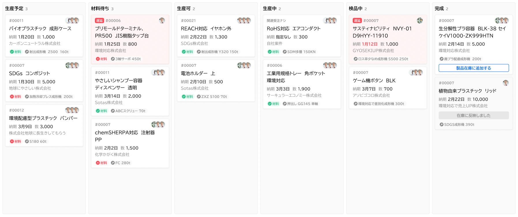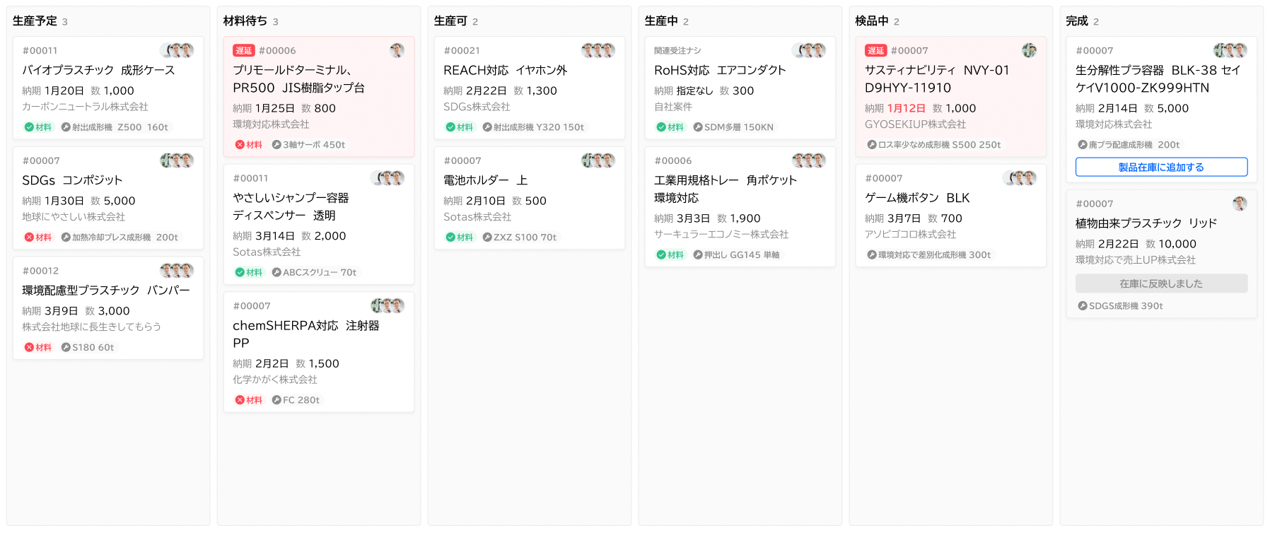 受注後の在庫確認から生産、検査、出庫までの管理は、ドラッグアンドドロップで簡単管理、生産の流れがひと目でわかるシステムです。生産現場でも簡単に操作が可能です。