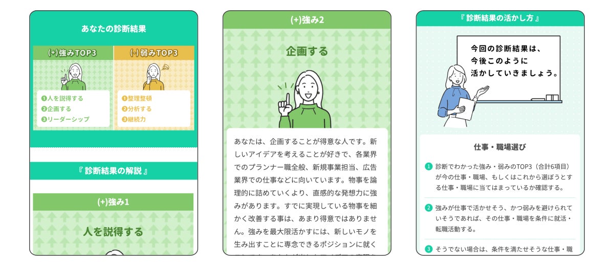 就活/転職の自己分析で強み弱みを知ることに役立つだけでなく、面接対策にもご活用頂ける診断です。