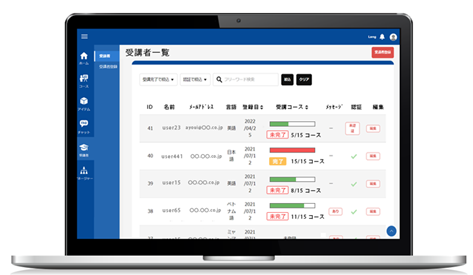 ✔ パソコンの管理画面から受講生の進捗を一括管理