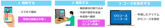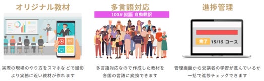 Wicourseはシンプル操作・多言語対応の動画制作ツールです。簡単操作で教育マニュアルのコンテンツを自社で作ることができます。