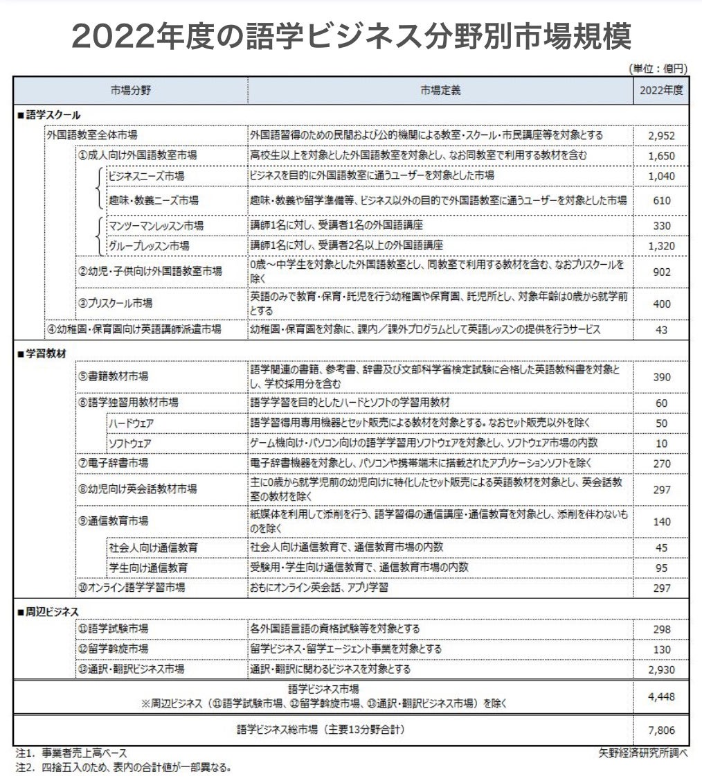 実際のところコロナ禍が収束に向かった2021年度は、前年度比1.2%増と上昇し英語業界に追い風が吹きました。