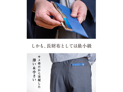 気仙沼産サメ革を使用した丈夫で美しい財布。カード・硬貨・紙幣が気持ちよく出し入れできる!使いやすさの最高峰を目指した日本の熟練職人の技が宿る「極薄3mmのサメ革長財布」が新登場!