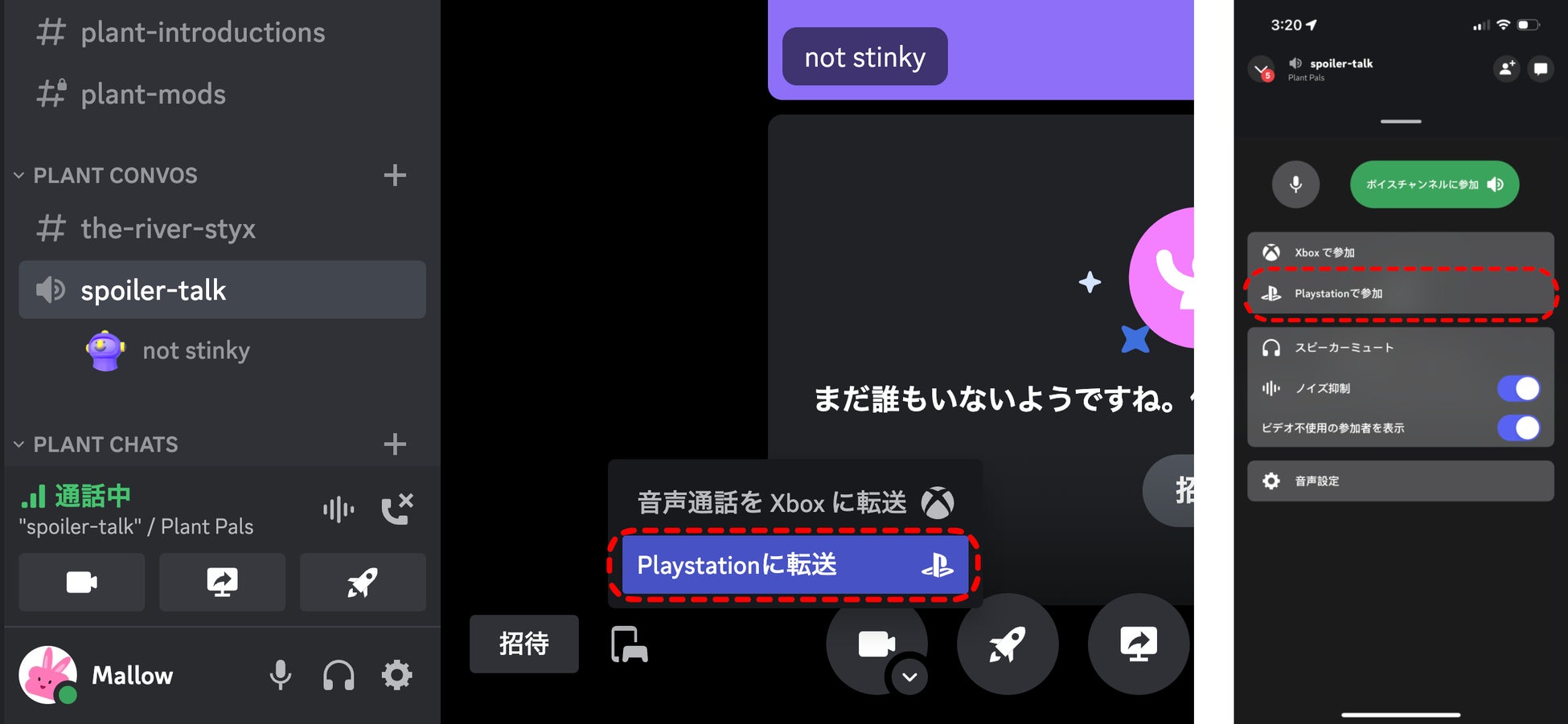 スマートフォンのDiscordアプリでは、「音声」コントロールを上にスライドすると"PlayStationで参加 "という新しいボタンが現れます。パソコンからDiscordを開いている場合は、電話とゲームコントローラーが隣り合わせになったようなボタンが表示されますので、それを押してください。