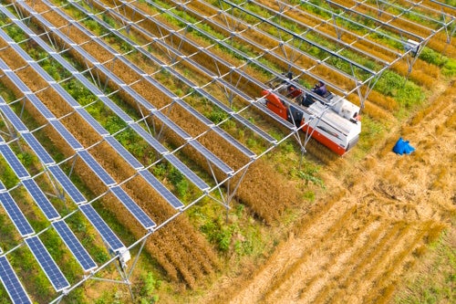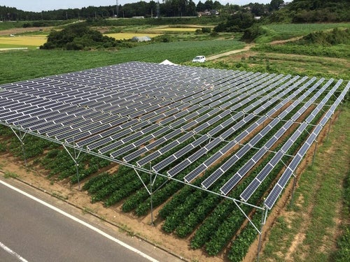 「ソーラーシェアリング(農営型太陽光発電システム)」は、過疎化・不法投棄・耕作放棄地問題などさまざまな問題を解決するために誕生したシステムで、耕作地の上にソーラーパネルを設置し、「農業」と「電気」の二毛作により自立分散型の新たな未来を目指します。設置のために山を切り開く必要がなく、耕作放棄地など眠っている土地を蘇らせることができるため、国土が狭い日本にも適した取り組みだと言われています。