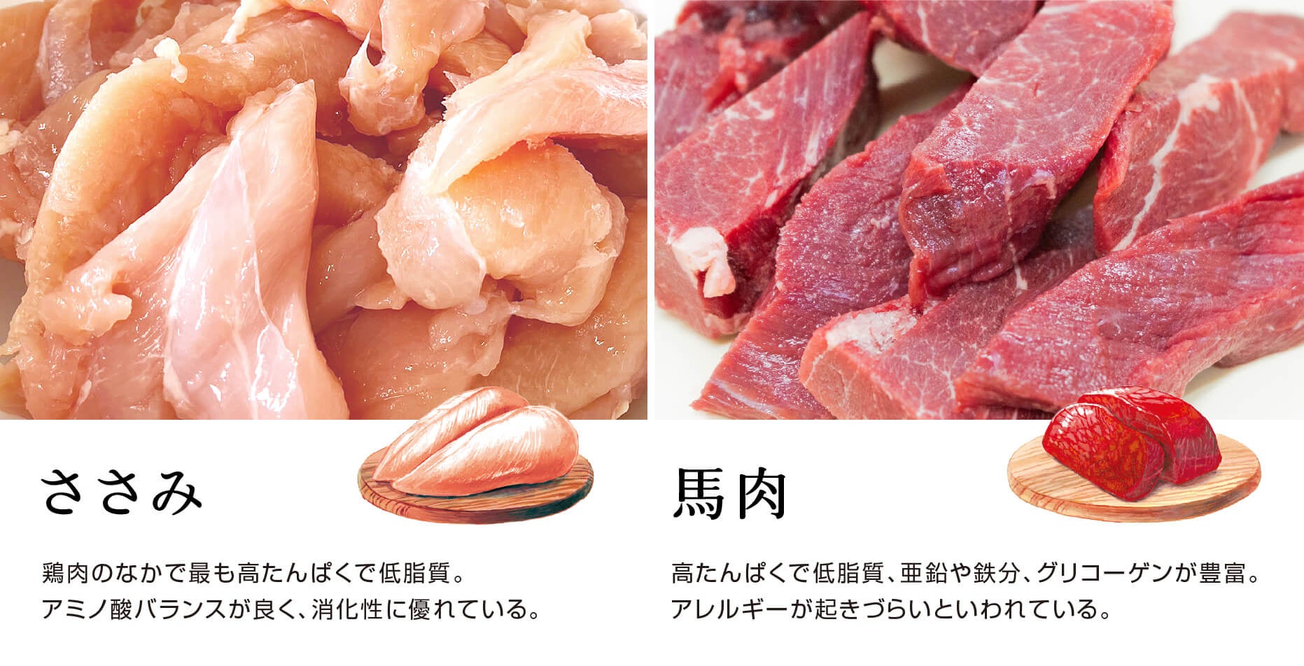「ささみと25種類のこだわり具材」「馬肉と25種類のこだわり具材」