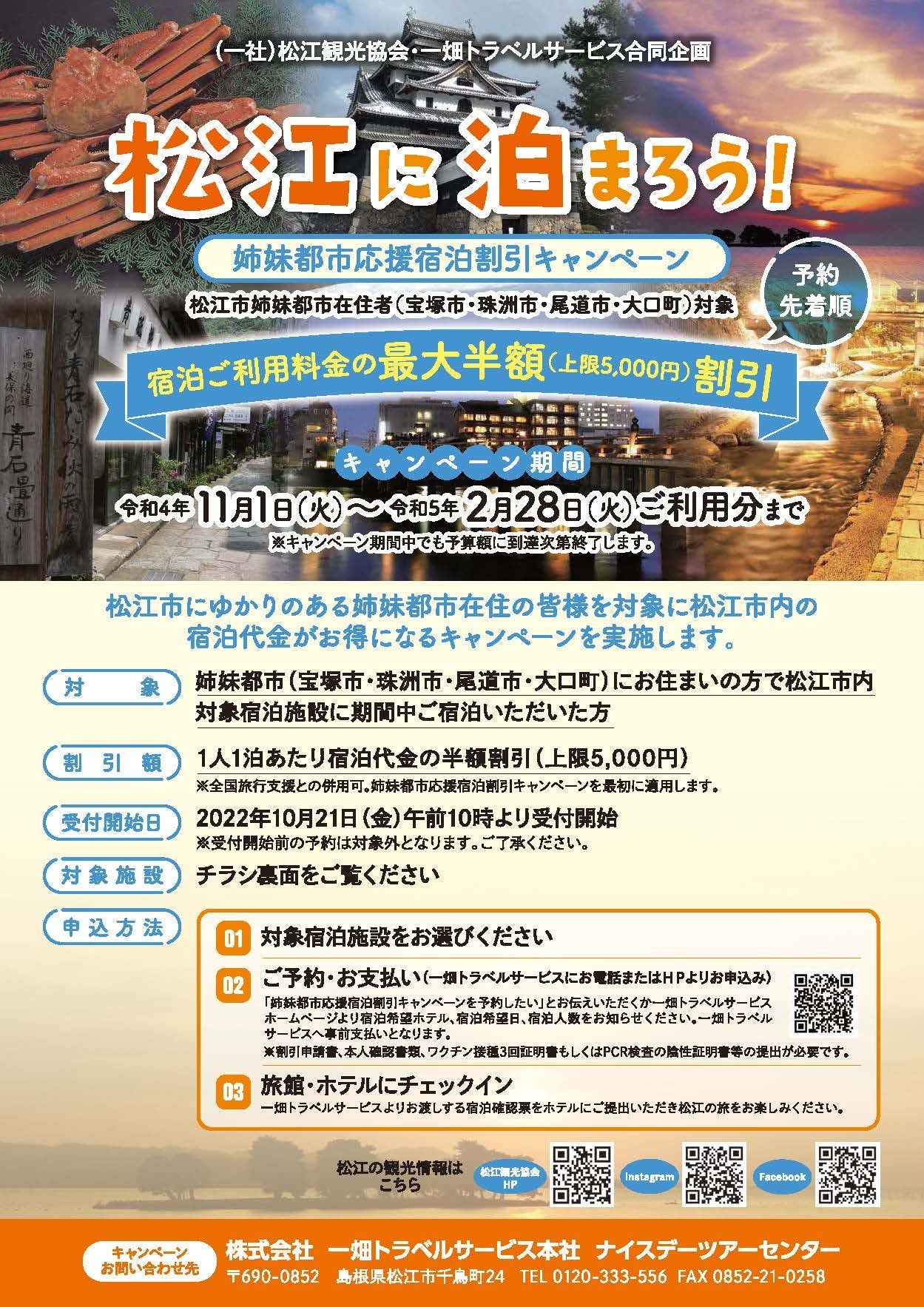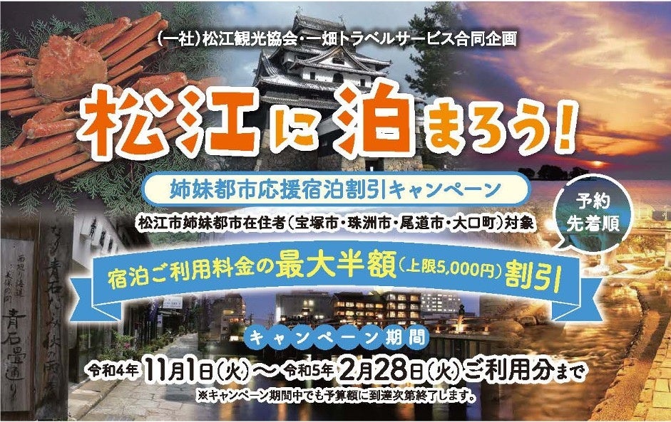 このキャンペーンは、松江市にゆかりのある姉妹都市在住の皆様を対象に松江市内の宿泊代金が