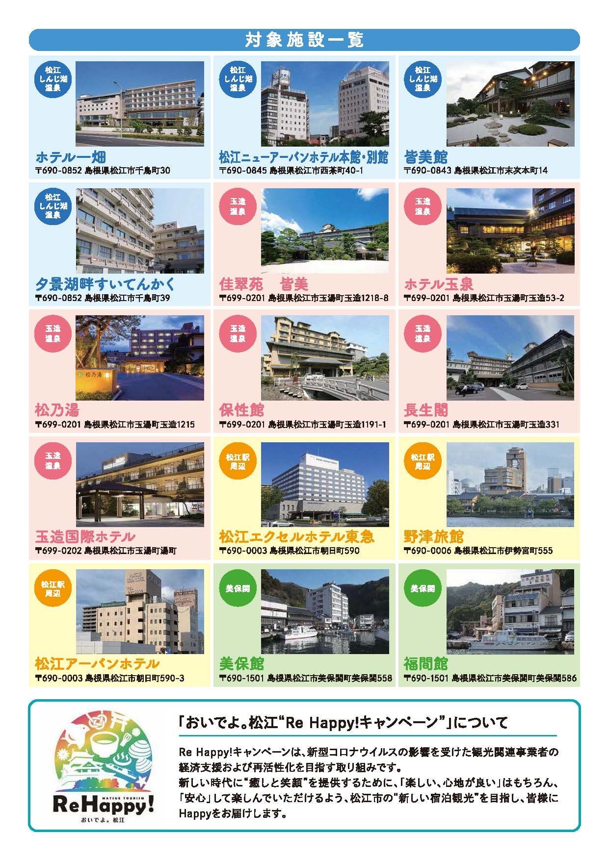 「安心」して楽しんでいただけるよう、松江市の“新しい宿泊観光“を目指し、皆様にHappyをお届けします。