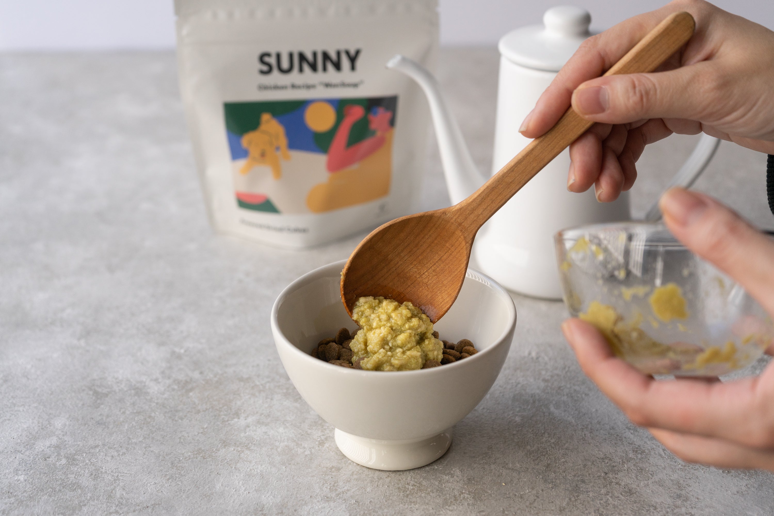 ワンプレートのブースでは、愛犬のための食べるスープ、WanSoup(ワンスープ)の「SUNNY-チキンレシピ」を紹介いたします。