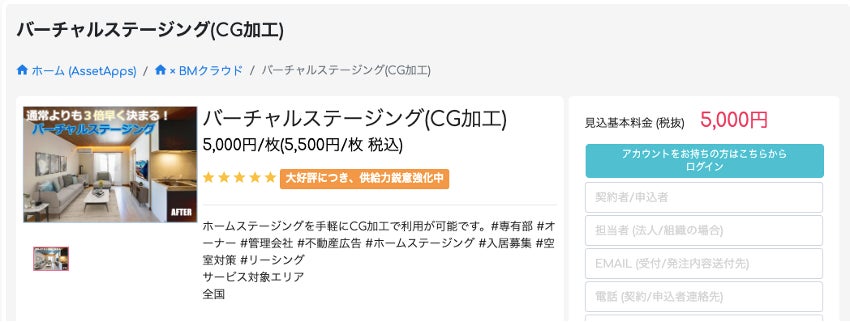 本サービス提携により、BMクラウド 不動産ネットショップ https://assetapps.shop/ に、新たに「バーチャルステージング」のメニューが加わりました。