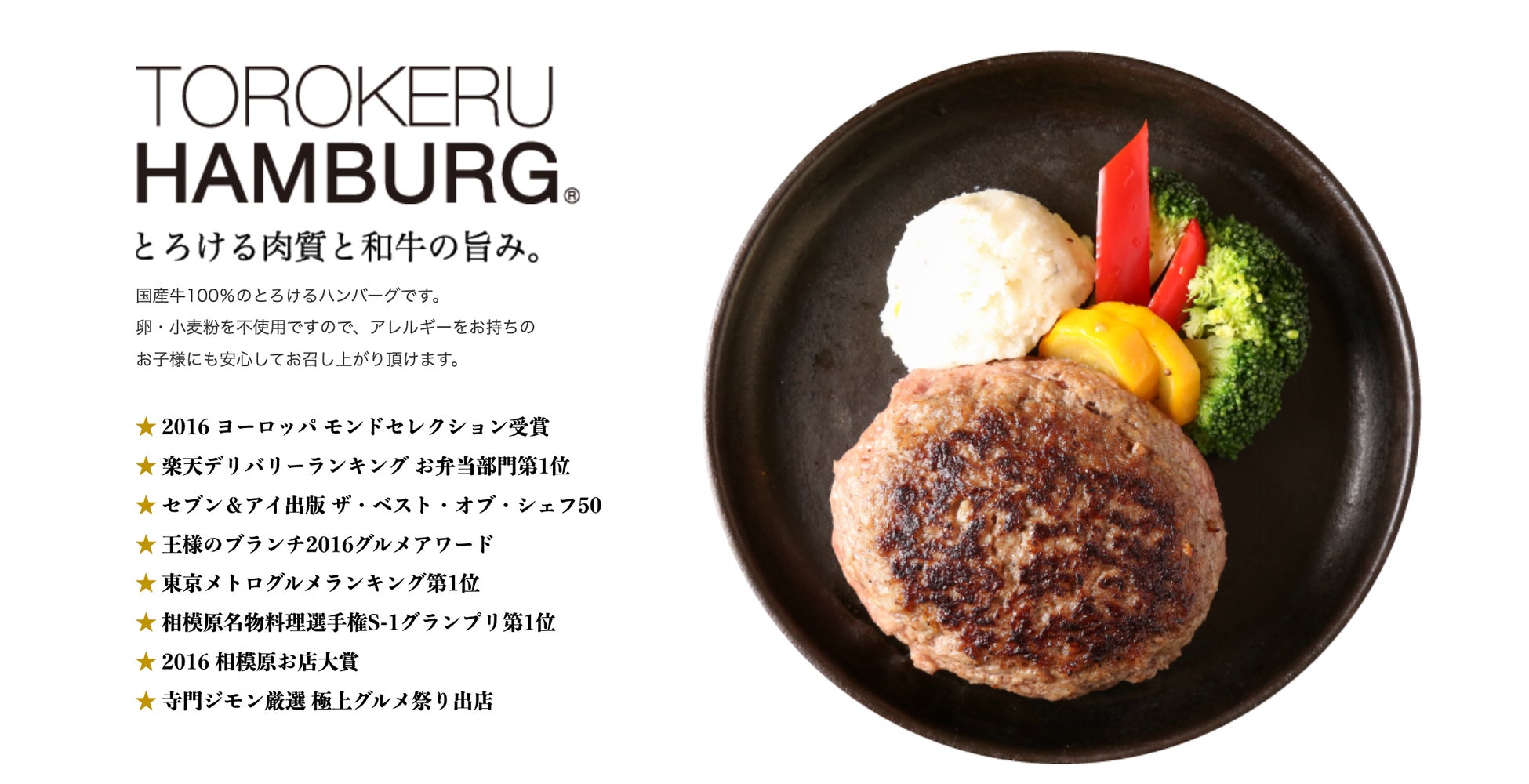 楽天市場 ハンバーグ部門 第1位(2023・2024・2025年) 東京メトロトレンドランキング 肉部門 第1位 相模原名物料理グランプリ受賞 海外展開:ニューヨーク、台湾、シンガポール “行列が絶えない店”として多数メディアに登場 全国30店舗以上を展開中(2025年5月現在)