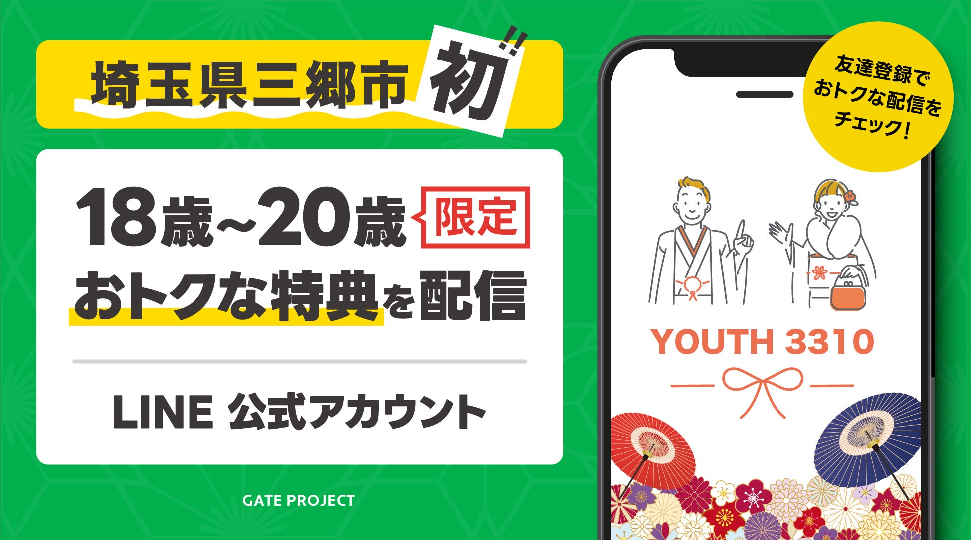 株式会社SOUZOUDO(本社:東京都中央区、代表取締役:鈴木優作)が立ち上げた埼玉県三郷市のまちづくりプロジェクト「GATE3310」は、2023年1月5日(木)、新成人を対象に三郷市の飲食店や美容系サロン等で使用できる特典を配信するLINE公式アカウント『YOUTH3310(ユースサンサンイチゼロ)』の運用を開始しました。