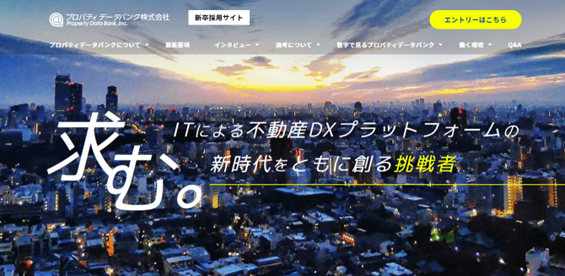 プロパティデータバンクでは今後の事業拡大を見据えた組織基盤の強化及び雇用創出への取り組みとして採用を強化していく方針としており、新卒についても活性化すべく、新卒採用サイトのリニューアルにいたりました。