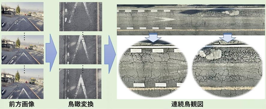 2022年までに、長年の研究開発を通じて、鳥観図解析によるひび割れ推定や車両同定技術による平たん性推定技術を開発しました。その推定精度は非常に高く、2022年の性能確認試験に合格しています。