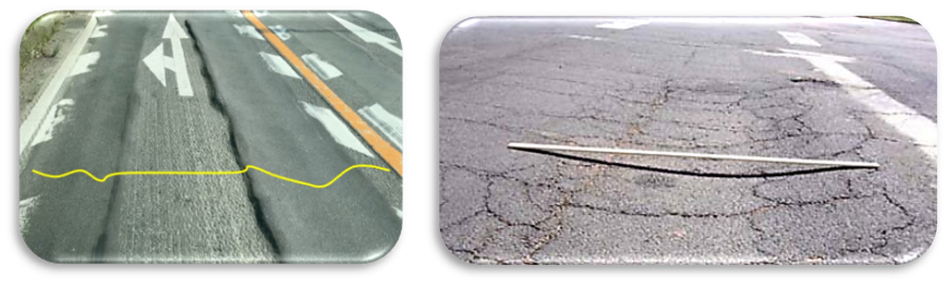 ただし、路面点検業務では、「ひび割れ」と「平たん性」のみならず、直進していてもハンドルを取られたり、車線変更時に車が揺れる要因となる「わだち掘れ」に対する点検も非常に重要です。従来の測定方法は人力測定や専用車に搭載されているレーザー投光器やラインセンサカメラによる測定に限定されており、一般車両の前方画像による推定は非常に難しいと言われていました。