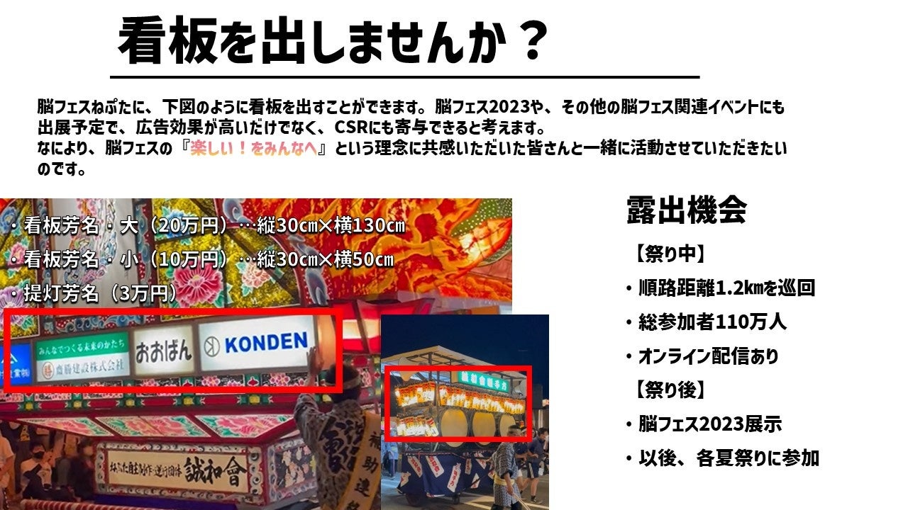 山車に掲載される山車に、看板や提灯を掲載することができます。一緒にインクルーシブ社会を作りませんか?