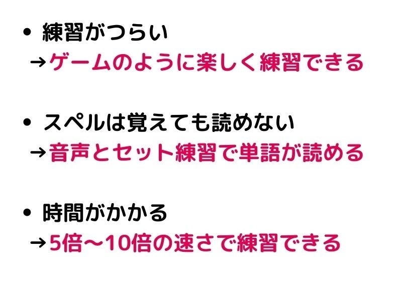 タイピング英語学習をはじめ、音読も文法も繰り返し練習し、学んだことを確実に定着させることができます。