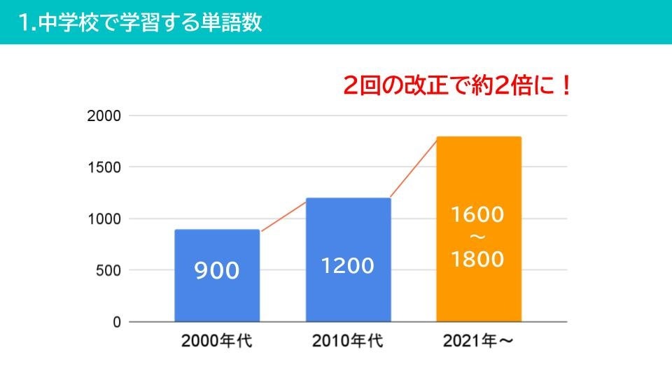 これは2021年度に改定された英語学習指導要領にもある中学3年間で学ぶ単語数と同じです。