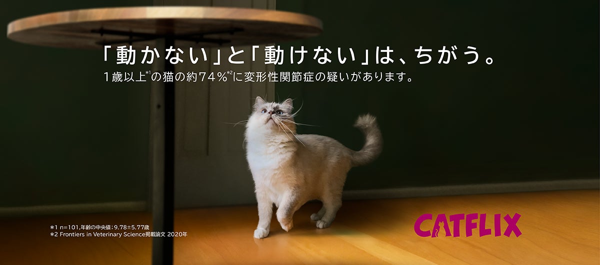あなたの愛猫は大丈夫?~世界の猫を変形性関節症の痛みから解放するための猫動画プロジェクト~『CATFLIX(キャットフリックス)』2023年4月27日 (木) より特設サイト公開